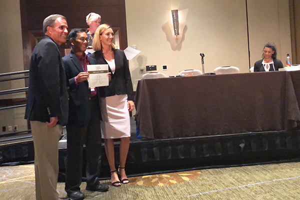 Ernie Medina, alumnus and current board member, accepts the award on behalf of Andrews University. (photo courtesy Dominique Gummelt)