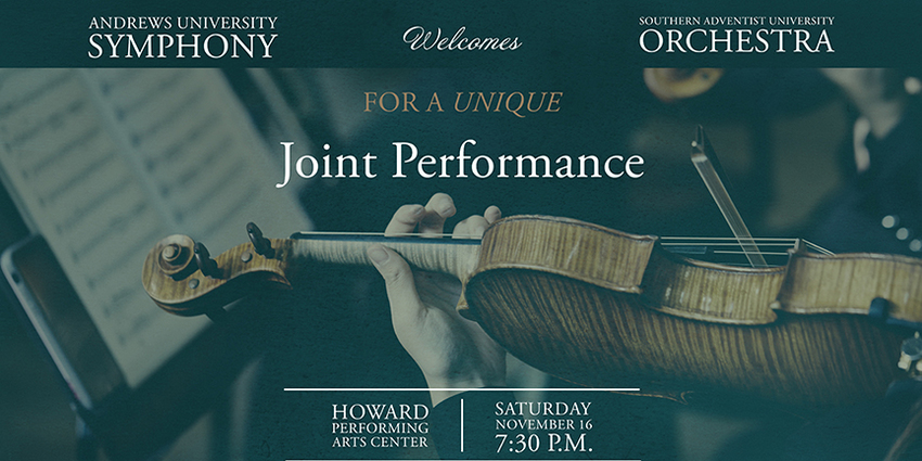 This free symphony orchestra concert will take place this Saturday, Nov. 16. Laurie Redmer Cadwallader, director of the Southern Adventist University Orchestra, and Marc Élysée, director of the Andrews University Symphony Orchestra, will join forces for a unique performance at 7:30 p.m. in the Howard Performing Arts Center. The program will feature works by Dukas, Barber, Shostakovich and Mendelssohn. With more than 160 performers, this concert promises to be a truly exceptional event!
