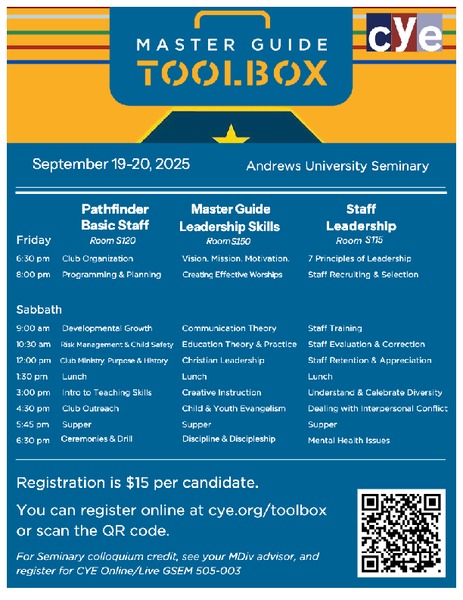 Please join us for the next Master Guide Toolbox event at the Andrews University Seminary, Sept. 19–20, 2025!