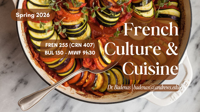 Taught in English, FREN 255 (CRN 407) covers francophone culture from around the world, including food, music, fashion, arts, religion, agriculture and traditions. Credits can be used toward a humanities requirement!