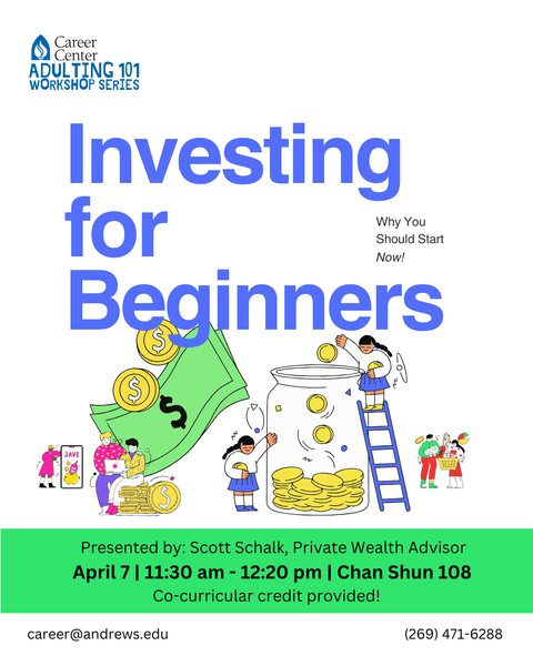 Start building your financial future with confidence. Financial expert Scott Schalk will cover the fundamentals of investing, helping you understand key concepts, types of investments and how to begin growing your wealth over time. This workshop will take place on Tuesday, April 7, 2026, from 11:30 a.m.–12:20 p.m. in Chan Shun Hall, Room 108, and is open to all majors, including graduate students. Cocurricular credit will be provided.