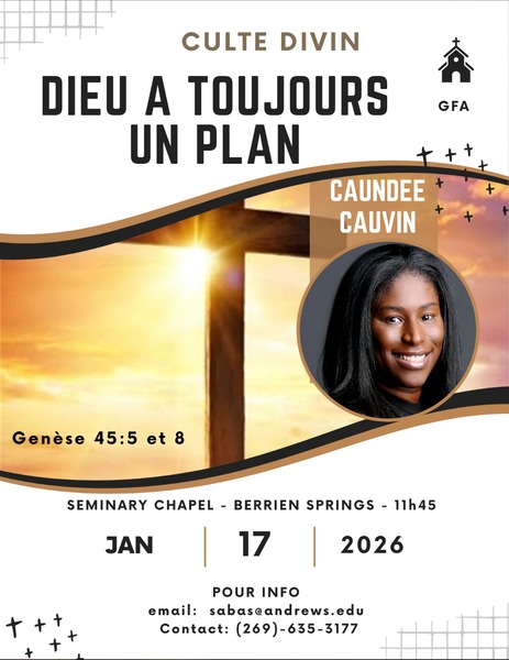 Culte divin à 11:45 a.m. avec Caundee Cauvin.