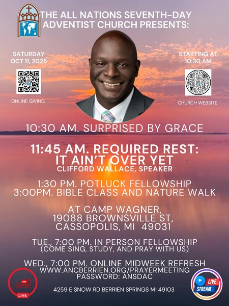 Join us for a Creation Care worship experience at the All Nations Seventh-day Adventist Church this Sabbath, Oct. 4, at 11:45 a.m., as Martin Hanna presents "Making Space for the Creator of Space." Adult and Children's Sabbath School... read more